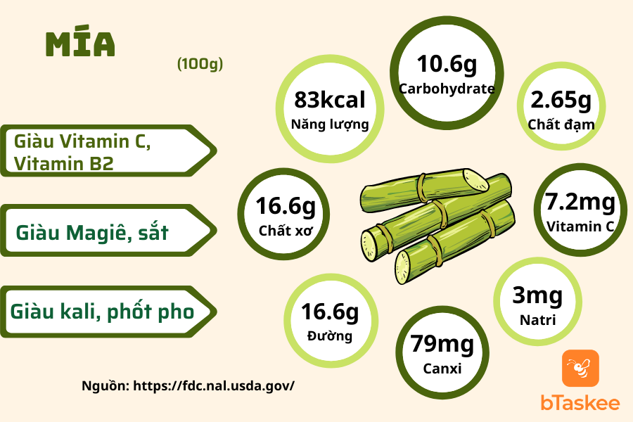 Theo USDA, trong 100g mía cung cấp: