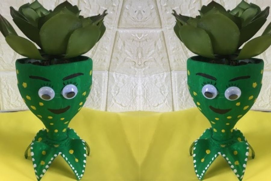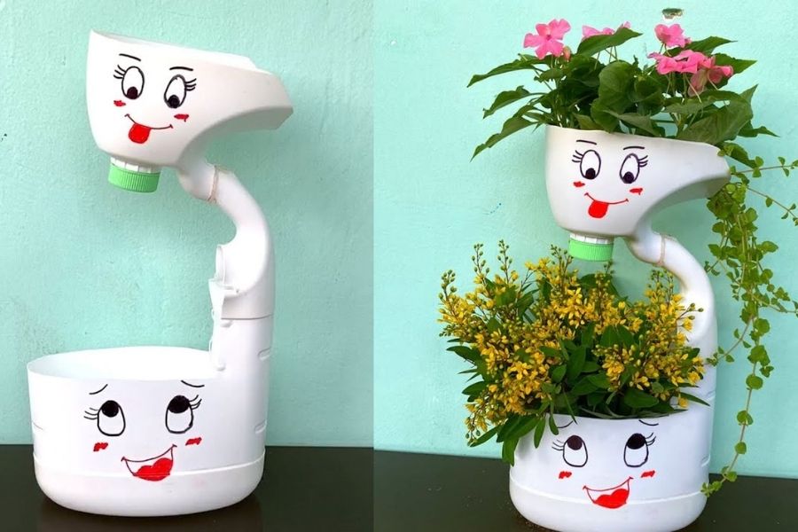 Tái chế chai nhựa thành bình hoa 2 tầng