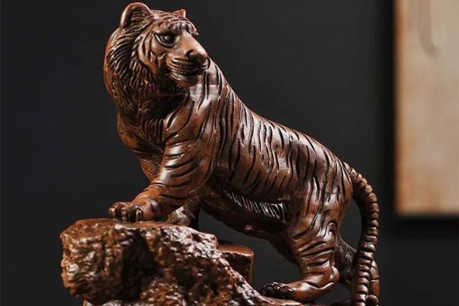Đặt biểu tượng con Hổ bằng gỗ ở chính diện phòng khách để tăng cường “Mộc” cho ngôi nhà.. Mang ý nghĩa phong thủy “thả hổ về rừng”, giúp gia chủ gặp nhiều may mắn, phát đạt, thăng tiến.