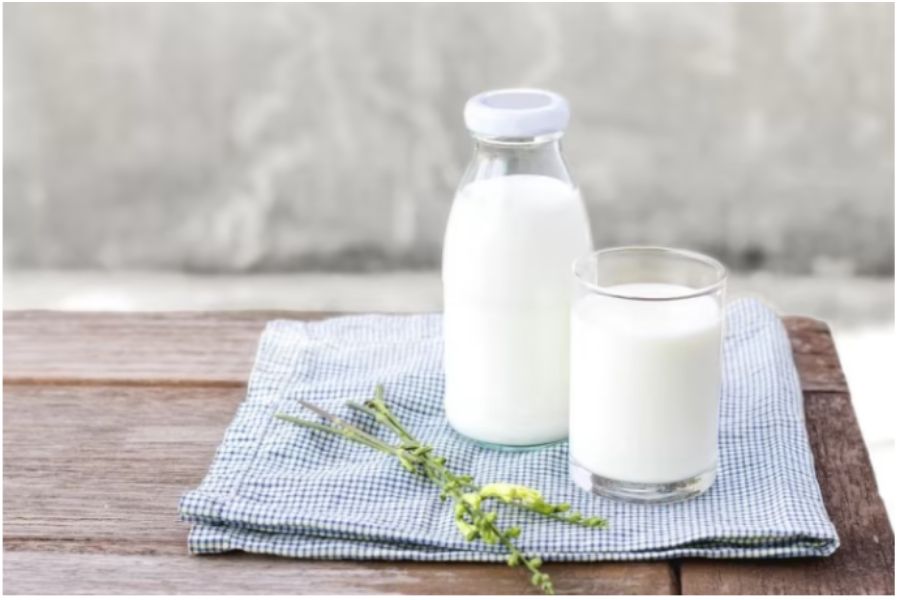 - Bước 1: Đổ một lượng sữa vừa đủ để ngâm lượng áo cần tẩy.