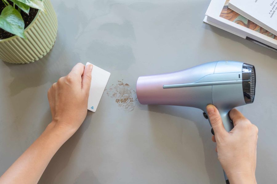 Chỉ với 10 phút là có thể tẩy băng dính trên gỗ sạch sẽ và nhanh chóng.