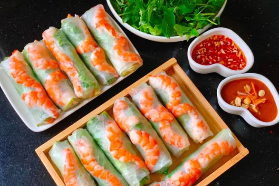 Gỏi cuốn tôm thịt là món ăn đầy đủ chất dinh dưỡng và cũng không chứa quá nhiều đạm, nên khá phù hợp để thay thế những món ăn Tết giàu chất đạm và tinh bột. Ăn gỏi cuốn cùng với nước chấm thơm ngon như mắm nêm hay nước mắm chua ngọt, sẽ làm tăng thêm sự ngon miệng.