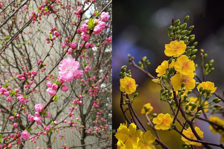 Hoa mai hay hoa đào nở vào mùng 1 Tết luôn được xem là điềm lành trong năm mới. Bởi màu sắc tươi tắn của hai loại hoa này còn có ý nghĩa thu hút vận may và tài lộc. Do đó, khi lựa hoa, bạn nên lựa còn nụ, trụi lá. Khi mua về bạn điều chỉnh lượng nước tưới để cây nở đúng dịp Tết. Lưu ý chăm sóc những chậu mai hay đào đúng cách để chúng nở đúng thời điểm.