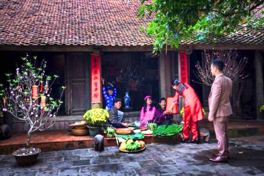 Tết là dịp để gia đình vui vầy sum họp, trao cho nhau những lời chúc tụng, mừng tuổi để bày tỏ lòng hiếu thảo và tình thương yêu của các thành viên trong gia đình.