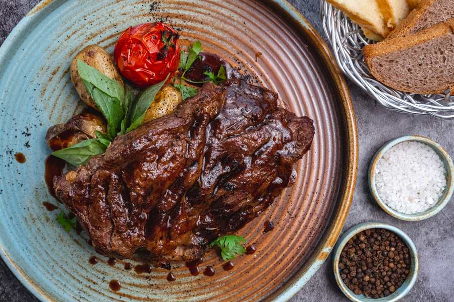 Thăn bò áp chảo thường được ăn kèm với khoai tây chiên, rau xà lách hoặc các loại rau củ tươi ngon khác. Bạn có thể thêm sốt BBQ, sốt phô mai nếu muốn tạo thêm hương vị cho món ăn.