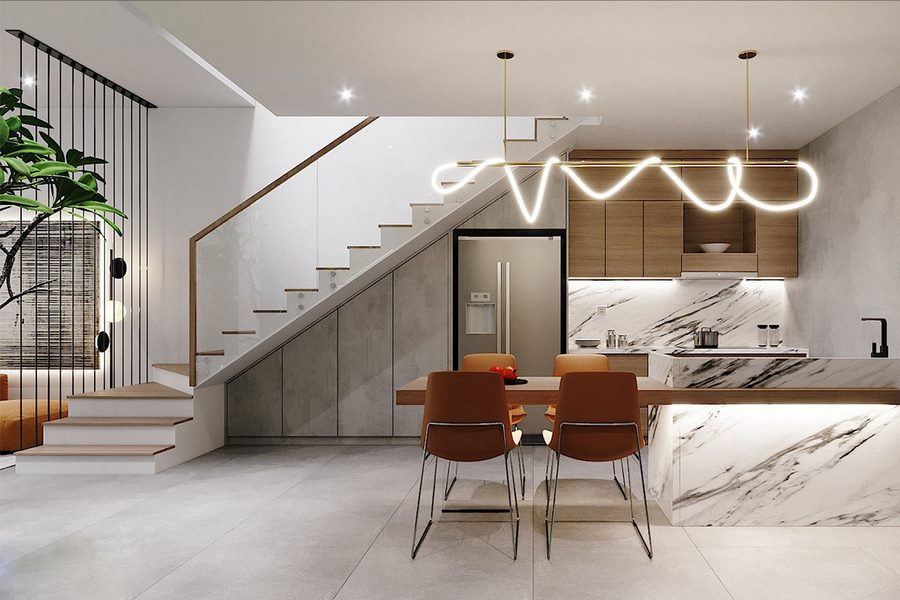 Sự hòa hợp giữa không gian nội thất và cầu thang nhà phố là điều rất cần thiết để tạo nên một không gian đầy ấn tượng.