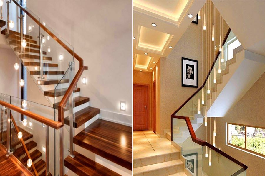 Nhiều người còn lắp đặt thêm hệ thống đèn cho từng bậc của lan can cũng như trang trí thêm cây xanh tạo nên một không gian huyền ảo.