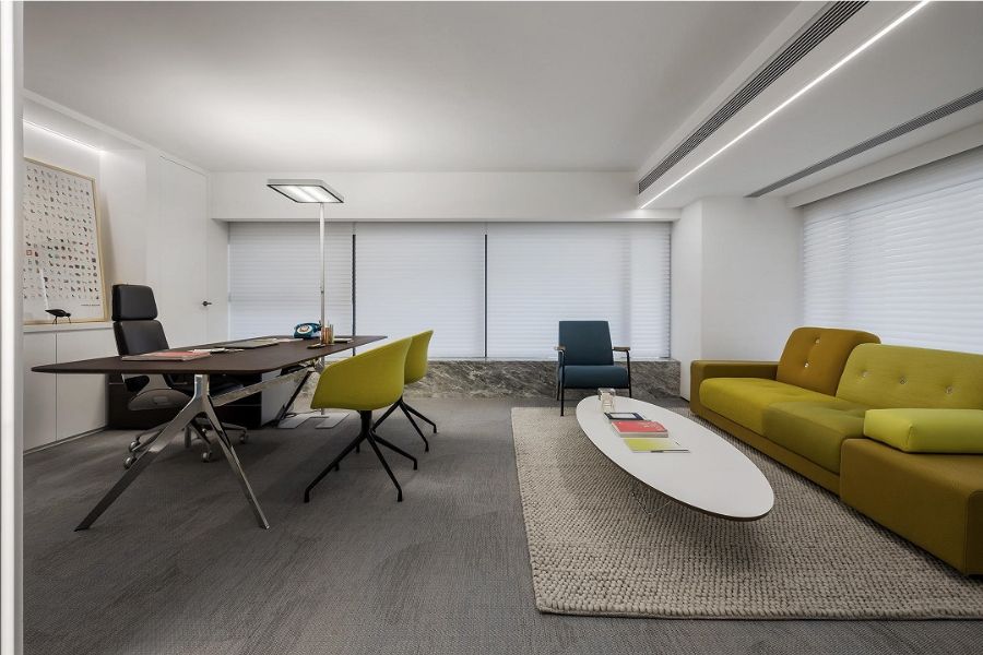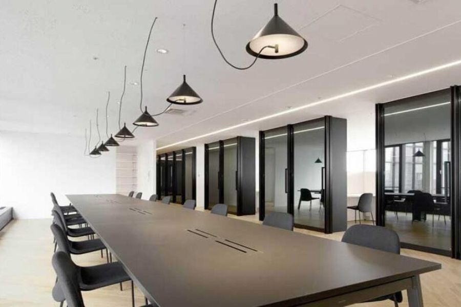Không gian hoạt động tốt nhất với ánh sáng tự nhiên, so với diện tích thực tế, văn phòng sẽ có cảm giác rộng mở hơn. Ngoài ra, hệ thống chiếu sáng là điều kiện cần và đủ để cân đối, điều chỉnh ánh sáng một cách dễ dàng, linh hoạt hơn giữa ngày và đêm.
