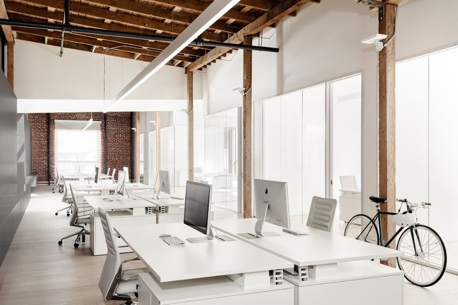 Có thể tận dụng bố cục bên trong hay ánh sáng để ngầm ngăn cách các không gian giữa các khu vực làm việc. Vì vậy, có thể dễ dàng bắt gặp gạch lát nền hoặc màu tường màu khác nhau ở nhiều văn phòng hiện nay để phân chia không gian hợp lý.