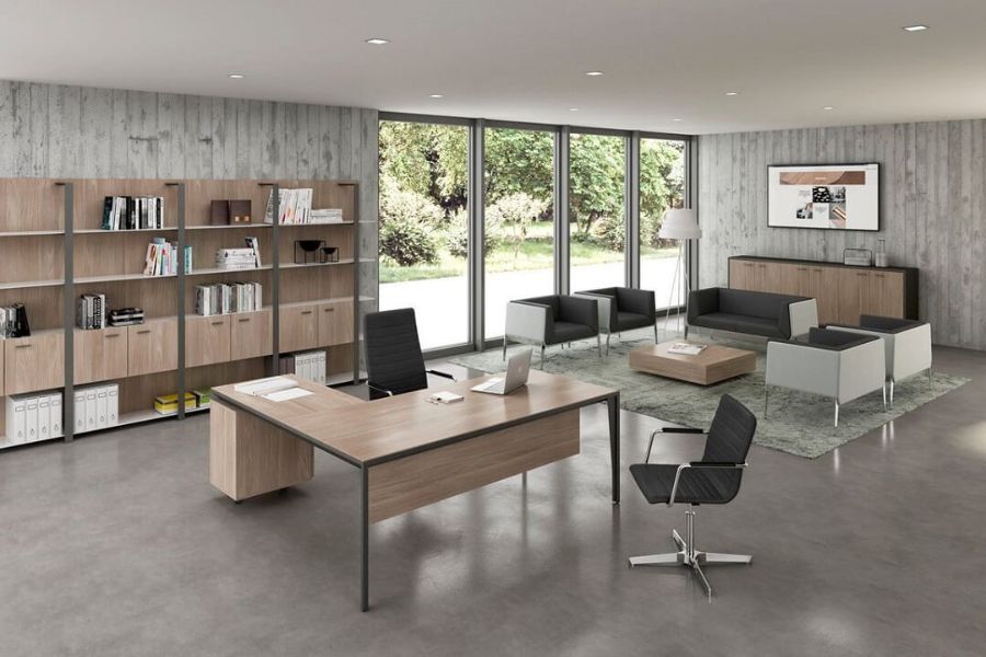 Các chất liệu nguyên bản thường được sử dụng cho đồ nội thất và phụ kiện của văn phòng phong cách tối giản. Chúng chỉ tập trung vào chức năng và tính thực tế. Do đó, những đồ trang trí không cần thiết sẽ không xuất hiện trong văn phòng theo phong cách này và giúp diện tích văn phòng rộng rãi, thoáng đãng hơn.