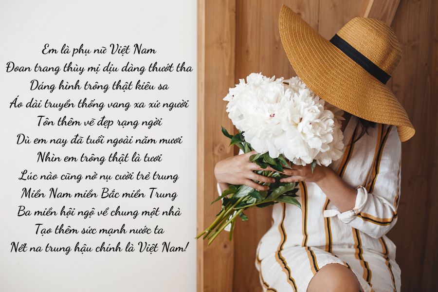 Bên cạnh việc gửi đi những lời chúc 20/10, bạn có thể gửi những bài thơ về ngày Phụ Nữ Việt Nam tặng mẹ, tặng vợ để thể hiện tình cảm đáng quý. Đây là một cách tuyệt vời để biểu lộ lòng biết ơn và sự hi sinh của phụ nữ trong cuộc sống. Mời bạn tham khảo hơn 15 bài thơ 20/10 cho dịp đặc biệt này ngay!