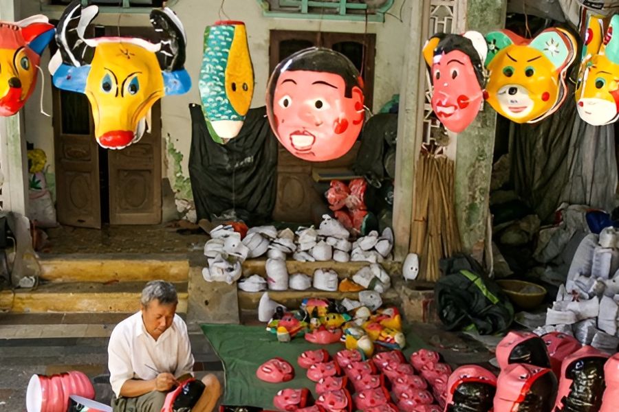 Mặt nạ giấy bồi là một trong những món đồ chơi không thể thiếu trong mỗi dịp Tết Trung Thu của người dân Việt Nam từ xa xưa. Những chiếc mặt nạ này thường được các nghệ nhân tạo hình thành các nhân vật nổi tiếng như: Thổ địa, Thị Nở,… với màu sắc bắt mắt và vô cùng dí dỏm.