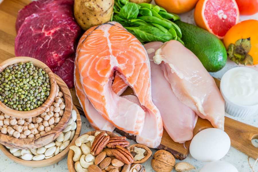 - Điều chỉnh lượng protein: Protein giúp duy trì cảm giác no lâu hơn, thế nên trong chế độ ăn cần lưu ý cung cấp nhiều thực phẩm chứa protein. Bạn có thể bao gồm thịt gia cầm, cá,… thực phẩm từ đậu nành, quinoa, hạt…..