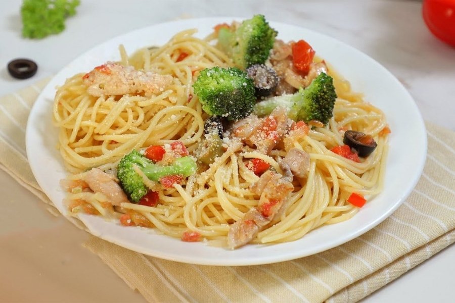 Với những nguyên liệu quen thuộc, dinh dưỡng và chứa lượng calo thấp, mì pasta chay bơ, cà chua, rau sẽ là một ý tưởng tuyệt vời cho thực đơn giảm cân mỗi ngày của bạn.