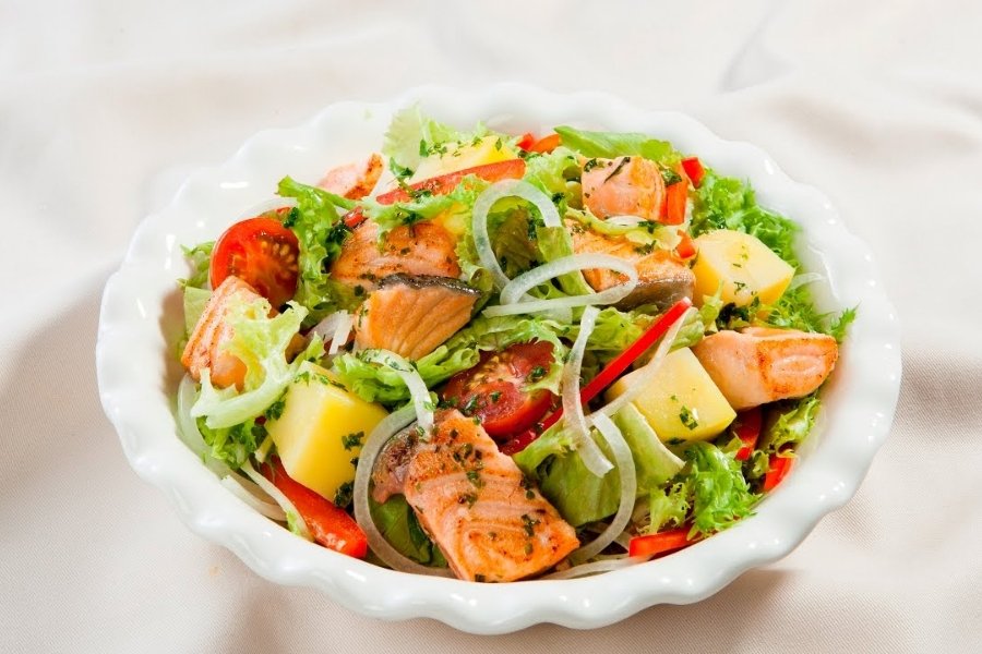 Nếu bạn là một tín đồ của cá hồi thì gợi ý lý tưởng về cách ăn bơ giảm cân cho bạn chính là món Salad bơ cá hồi.