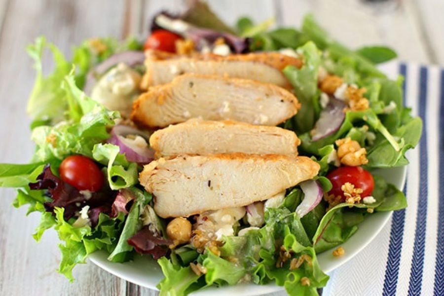 Trong thực đơn các món ăn healthy với bơ chắc chắn không thể bỏ qua salad bơ với gà và rau củ – một món ăn vừa đầy đủ dưỡng chất vừa có tác dụng giảm cân hiệu quả.