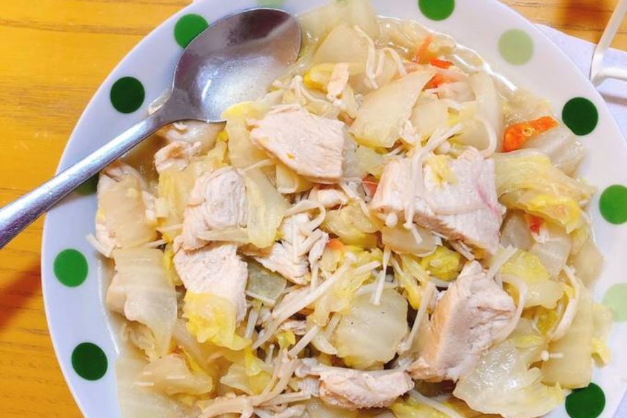 - Bữa trưa: Cháo bột khuấy, cải thảo luộc