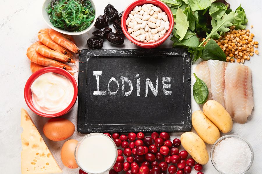 - I-ốt (iot): Giúp hỗ trợ tổng hợp các hormone ở tuyến giáp cũng như kiểm soát sự tăng trưởng của tế bào ảnh hưởng đến các bộ phận như tim, thận, cơ bắp, não,… Hàm lượng bổ sung cho trẻ là 110mcg/ngày (Theo Văn phòng bổ sung chế độ ăn uống (ODS) của Viện Y tế Quốc gia Hoa Kỳ).