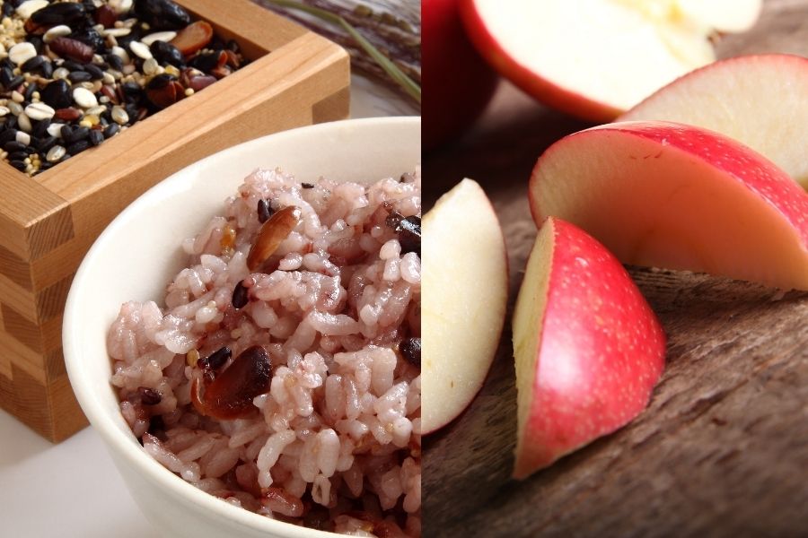 Đầu tiên gọt táo và rửa sạch sau đó hấp táo khoảng 15 phút rồi rây cho mịn. Sau đó trộn vào bột ăn dặm đã chuẩn bị sẵn là bé đã có món ngũ cốc gạo táo vừa đưa miệng vừa dinh dưỡng rồi.