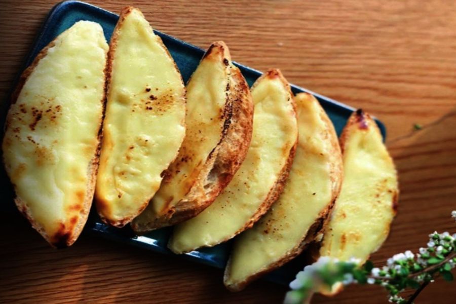 - Sáng: Bánh mì nướng phô mai và trái cây