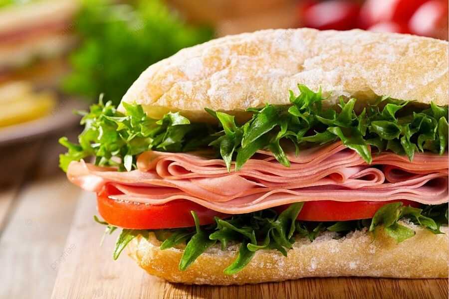 - Bữa tối: Bánh mì sandwich với thịt hun khói, rau xà lách