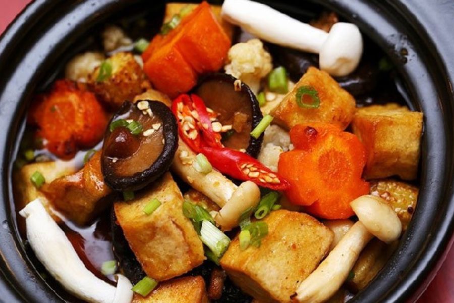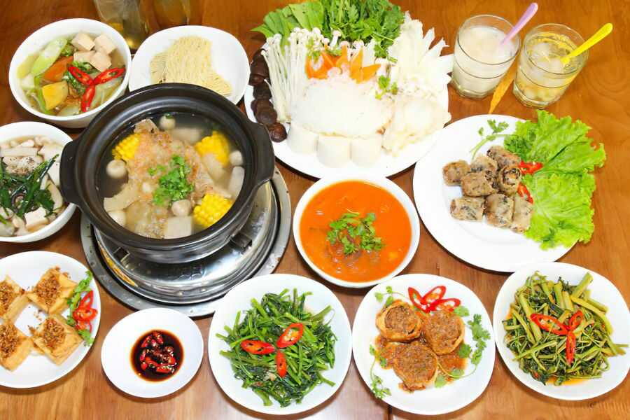 - Canh hầm rau củ, canh nấm đậu phụ, cà ri chay, canh rong biển hạt sen, canh khoai lang,…