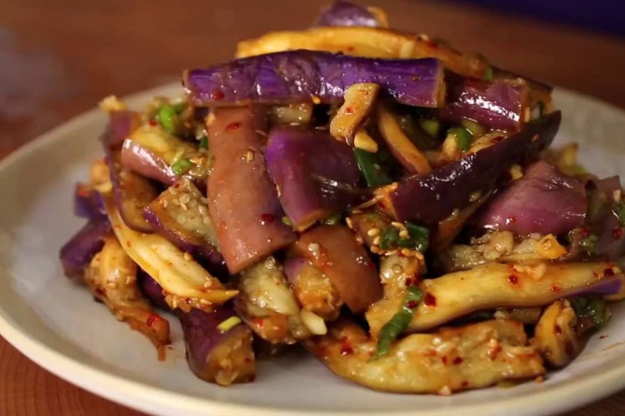 - Bữa tối: cà tím xào xì dầu, nấm đông cô cuộn nấm hương, canh đậu bắp.