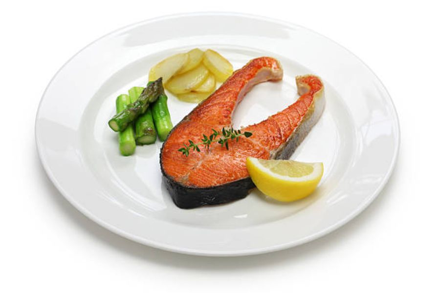 Cơm mẹ đem nấu chín cùng với đậu lăng, cá hồi mang đi áp chảo với sốt kem bơ. Về chất xơ, bố mẹ có thể chuẩn bị canh rong biển, salad rau củ trong thực đơn cho bé 1 tuổi. Tráng miệng mẹ có thể cho bé ăn các loại trái cây mọng nước như cam, nho, măng cụt,…