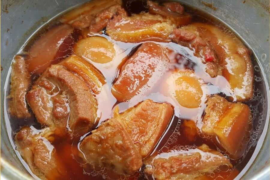 - Buổi trưa: Thịt kho trứng với rau xào.