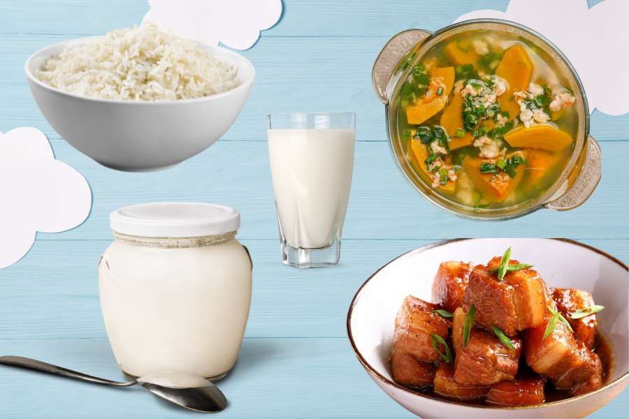- Bữa sáng: Cháo bí đỏ thịt bằm