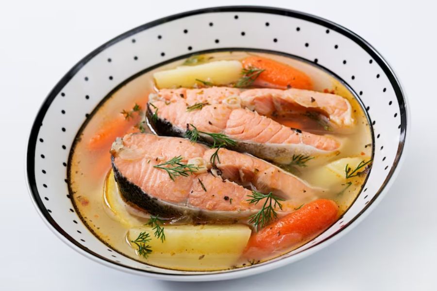 - Bữa trưa (11h00 – 11h30): Bún cá + chè hạt sen