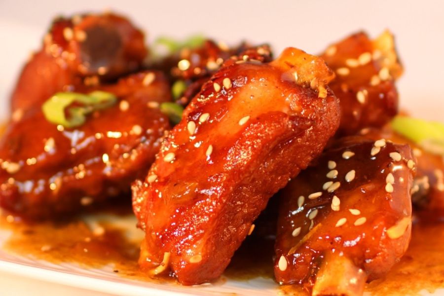 - Bữa trưa (11h00 – 11h30): Cơm + sườn xào chua ngọt + canh cua đồng cải bẹ + đu đủ