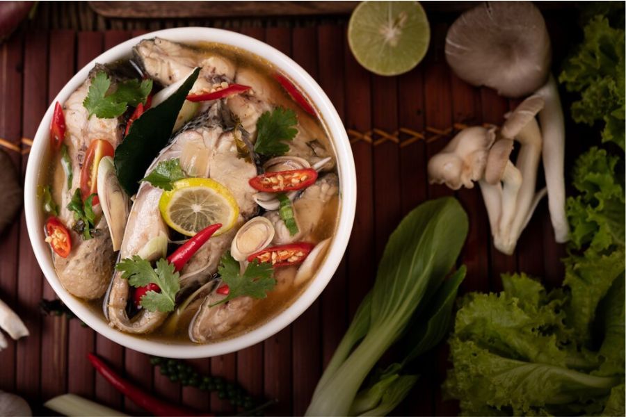 - Tối: Canh cải ngọt với tôm và thịt heo.