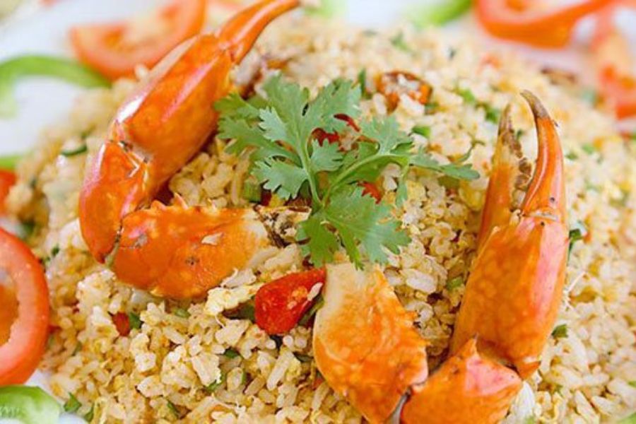 - Bước 1: Rau củ mang cắt thành hạt lựu, đem xào chín. Sau đó cho thịt cua đã lọc vào xào sơ cùng.