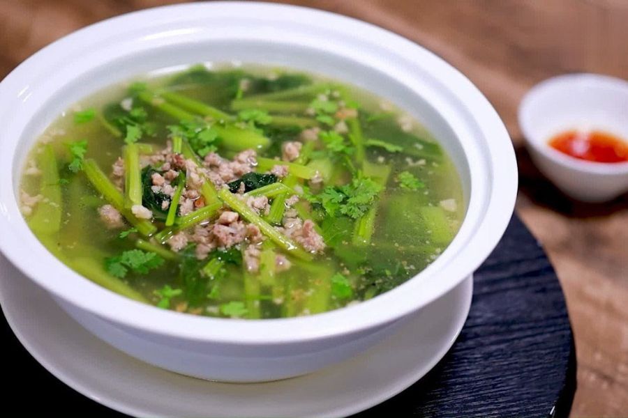 Chiều: Canh cải thìa tôm, thịt kho hạt sen, táo.