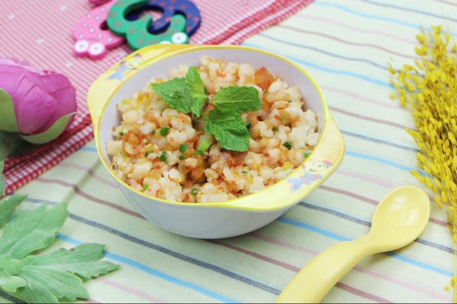 - Bữa sáng: Cơm nát cà rốt trộn tôm.