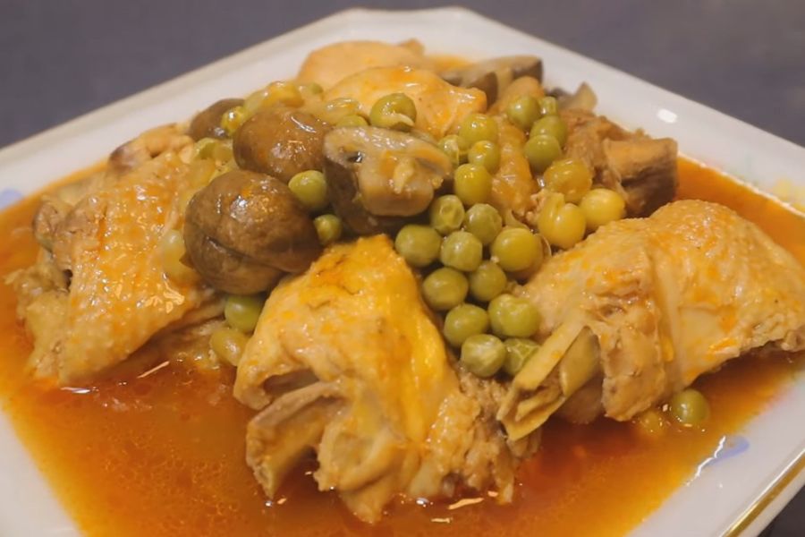 - Bữa sáng: Cơm nát nấm đùi gà hầm.