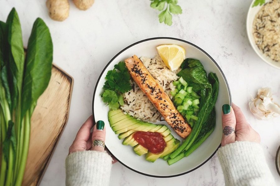 - Salad cá hồi bưởi bơ và hạt Quinoa