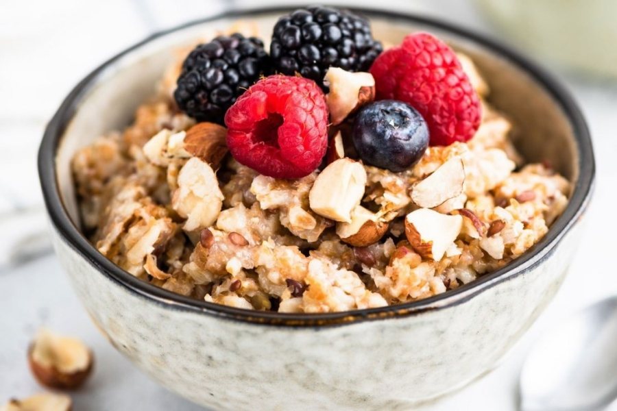 - Yến mạch + 3/4 cốc sữa tươi không đường