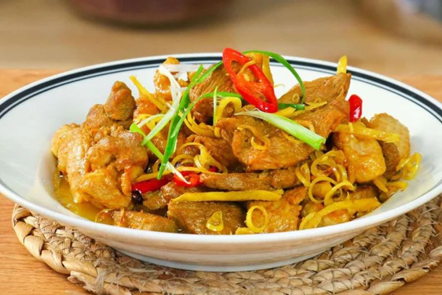 - Bữa tối: Thịt heo xào chua ngọt với rau muống
