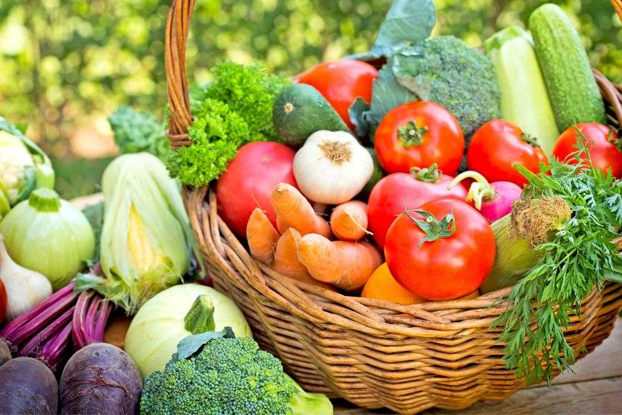 - Các loại rau xanh, nấm, củ quả tươi