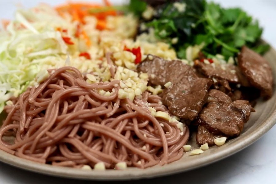 - Buổi trưa (330 calo): 01 bát bún bò, salad rau củ