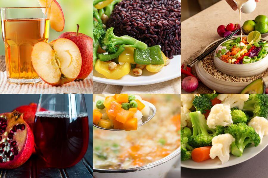 - Bữa tối: salad, súp rau củ và 2 cốc nước.