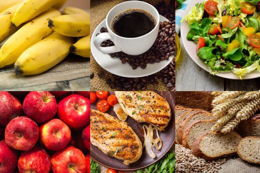 - Bữa tối: 2 – 3 quả chuối, 50g súp lơ luộc, 50g cà rốt, 5 – 6 viên chả ức gà