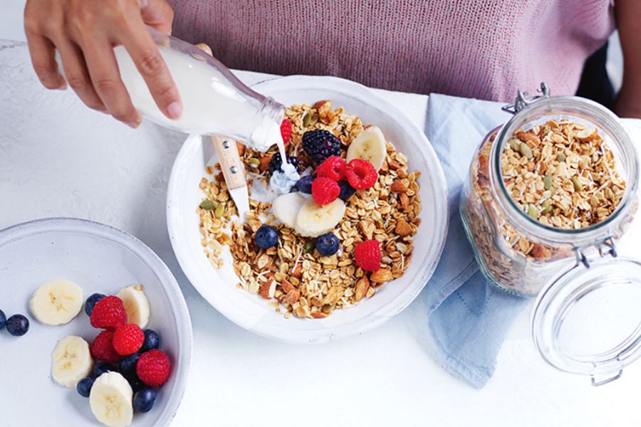 - Bữa phụ: Sữa chua với ngũ cốc yến mạch và các loại hạt.