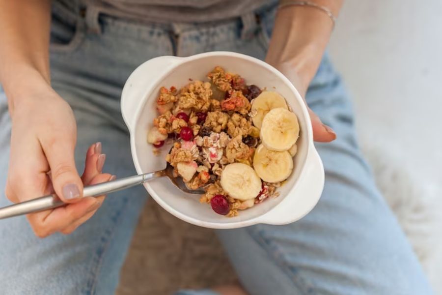 - Sữa chua không đường và granola cho bữa sáng