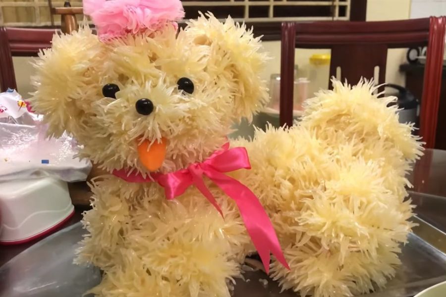 Tỉa chú chó bông trang trí mâm cỗ Trung thu từ trái bưởi
