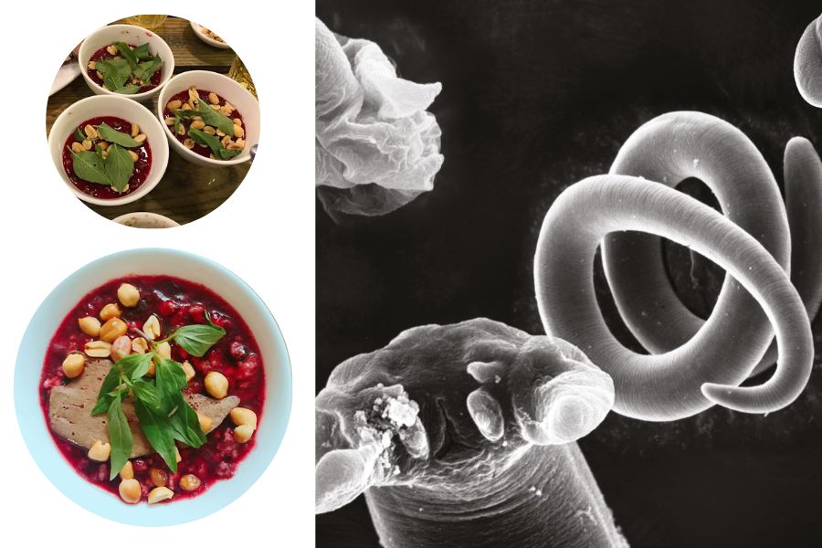 Giun xoắn – 1 loại giun được Bộ Y Tế cảnh báo là 1 loài kí sinh gây nguy hiểm hơn nhiều so với các loại giun sán thông thường. Chúng xâm nhập vào đường ruột con người thông qua việc con người ăn máu sống của các loài động vật thường sống ở khu vực nhiều chất thải, ô nhiễm,…
