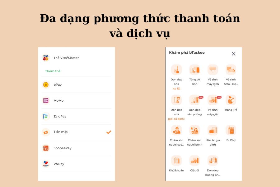 Tất nhiên, bạn vẫn có thể chọn cho mình cách thanh toán truyền thống, trả tiền mặt cho nhân viên giúp việc.