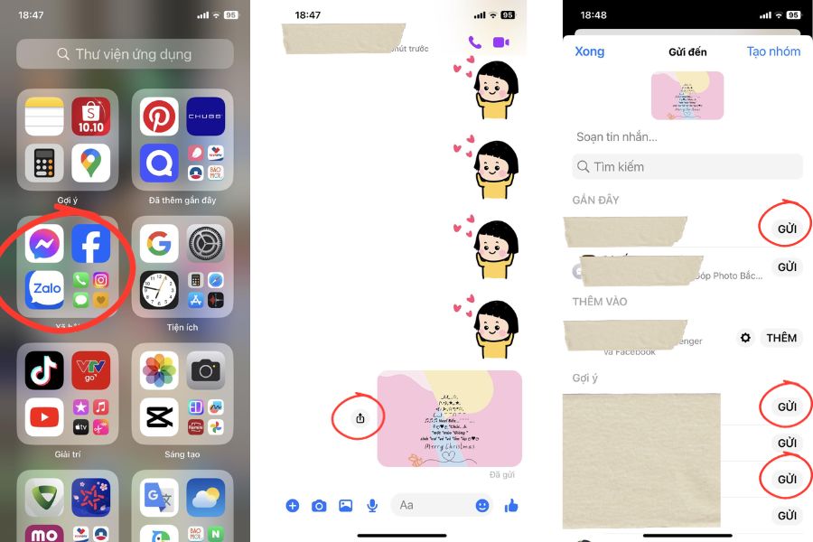 - Bước 4: Ấn giữ vào lời chúc/tin nhắn bạn vừa gửi rồi ấn chuyển tiếp. Nhập tên, tài khoản liên hệ của những người mà bạn muốn dành tặng lời chúc mừng Giáng Sinh. Rồi ấn nút gửi là hoàn thành.